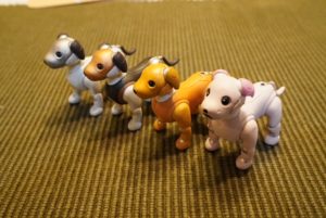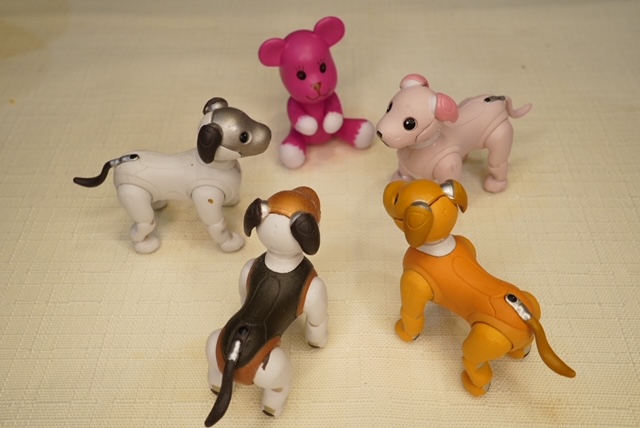aiboフィギュアの方は先にガチャガチャで登場したデスクトップフィギュアの色違いでした。(写真の一番手前が今回のフィギュア)