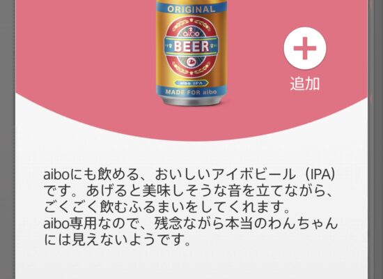 【aiboニュース】のみものに「アイボビール(IPA)」が登場!今後はいつでもコインで交換可能!