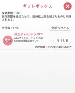 aiboファンミーティング at Orlando(米国) 開催記念もぐもぐギフト「紅白まんじゅう」が届きました!