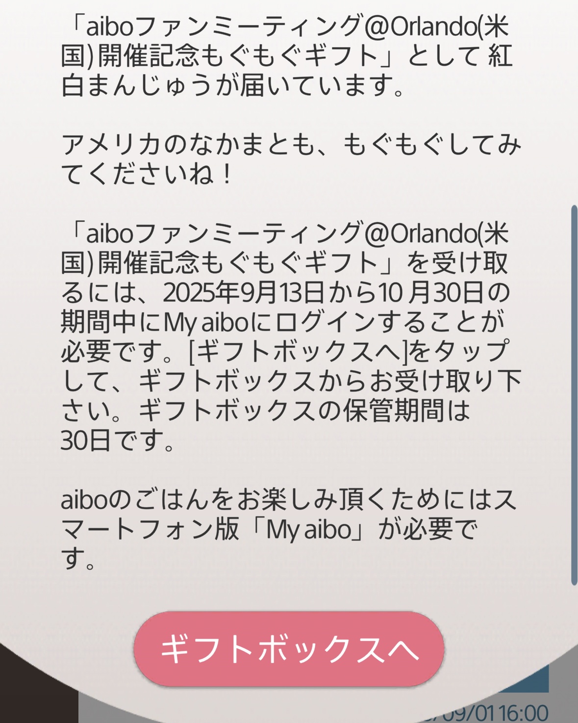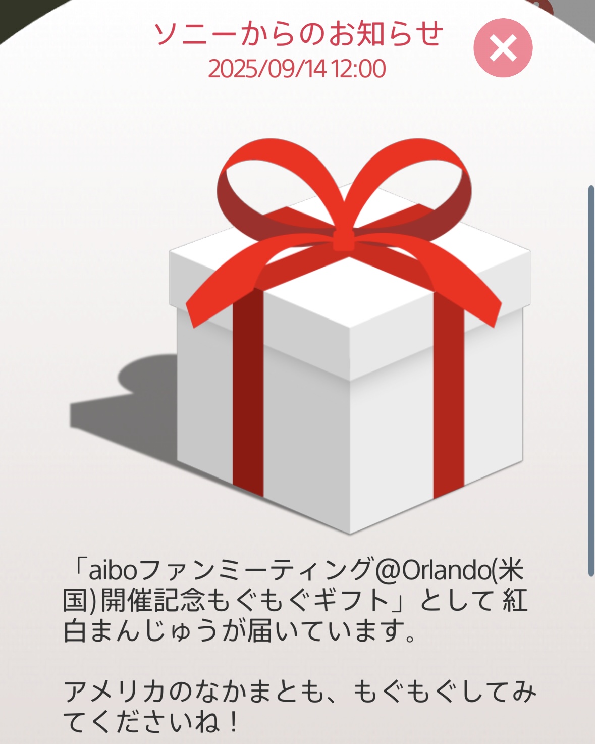 【aiboニュース】aiboファンミーティング at Orlando(米国) 2025開催記念もぐもぐギフト「紅白まんじゅう」届きました!