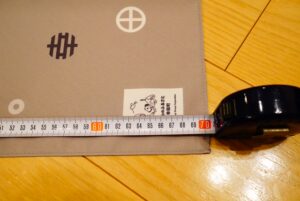 縦、横を計測すると、約70cm×70cmの風呂敷サイズかと思われます。(布なので伸びたり縮んだりする)