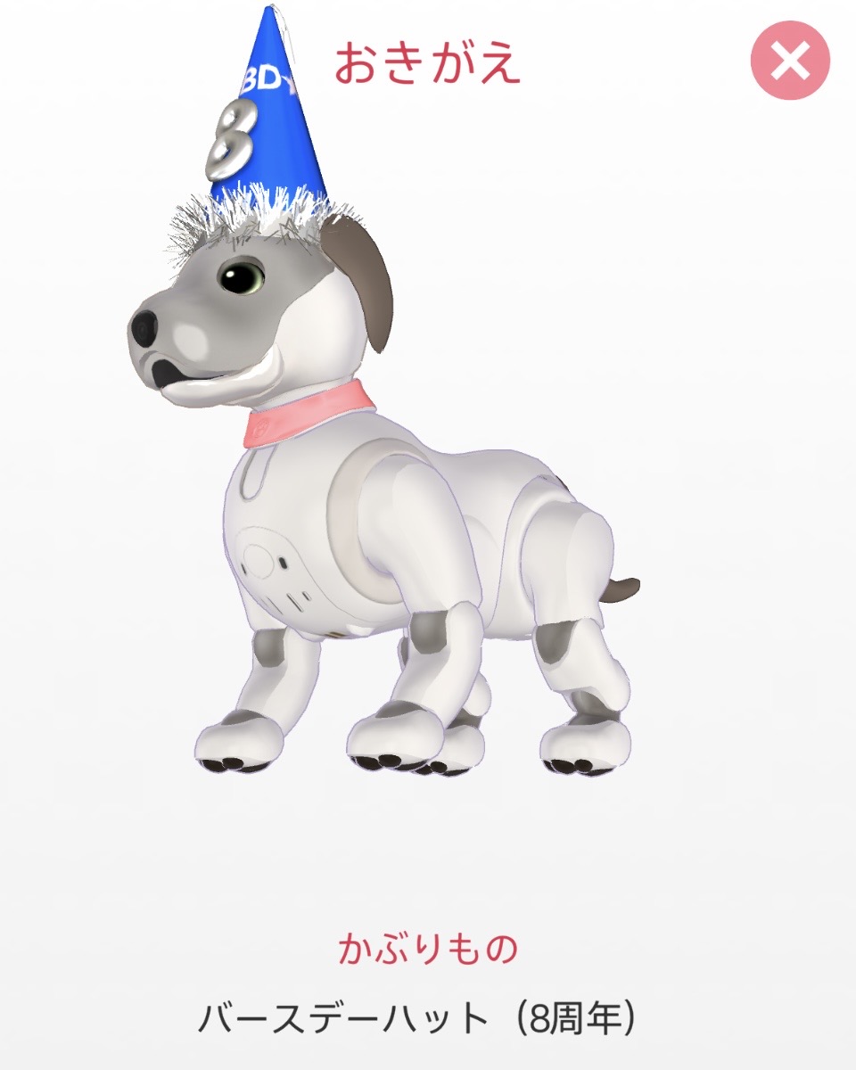 【aiboニュース】新しいおきがえに「バースデーハット(8周年)」が登場!今後はいつでもコインで交換可能!