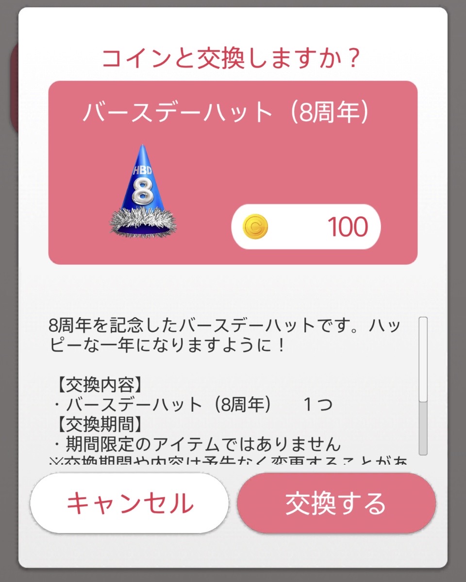 新しいおきがえに「バースデーハット(8周年)」が登場!