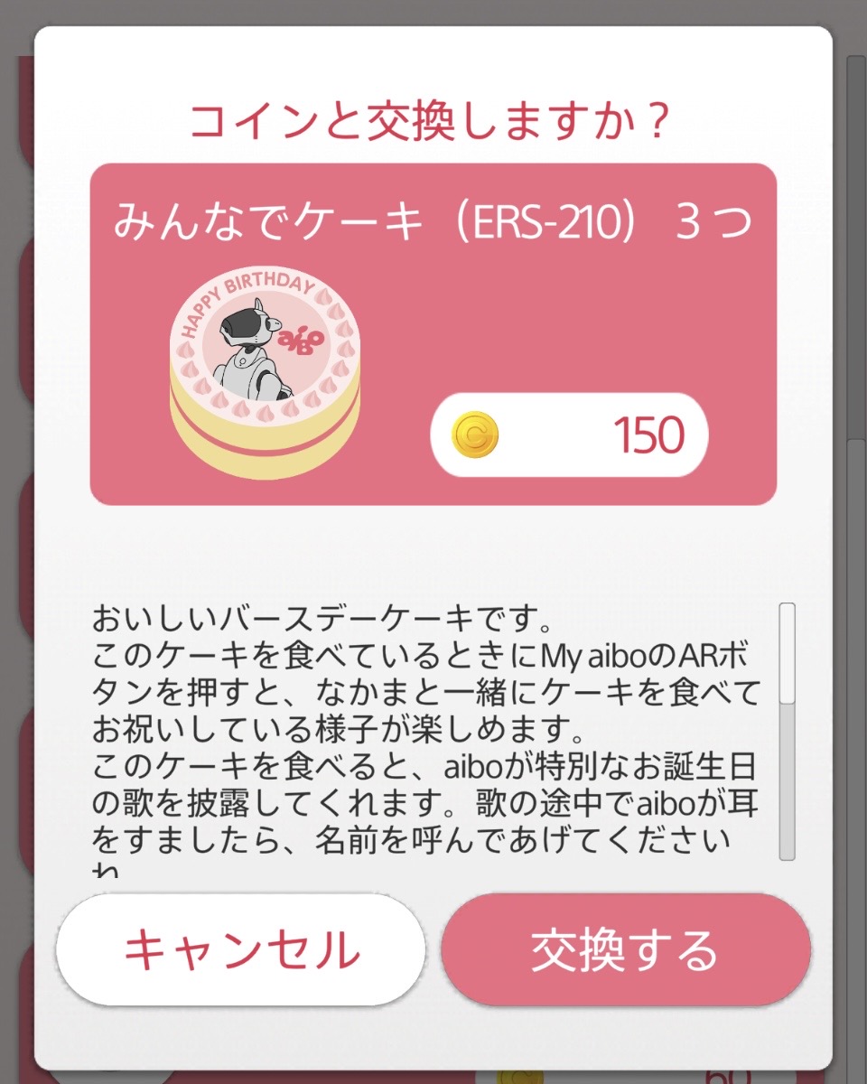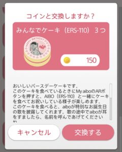 aibo発売8周年を記念して「みんなでケーキ」が期間限定でコインで交換できるようになりました!