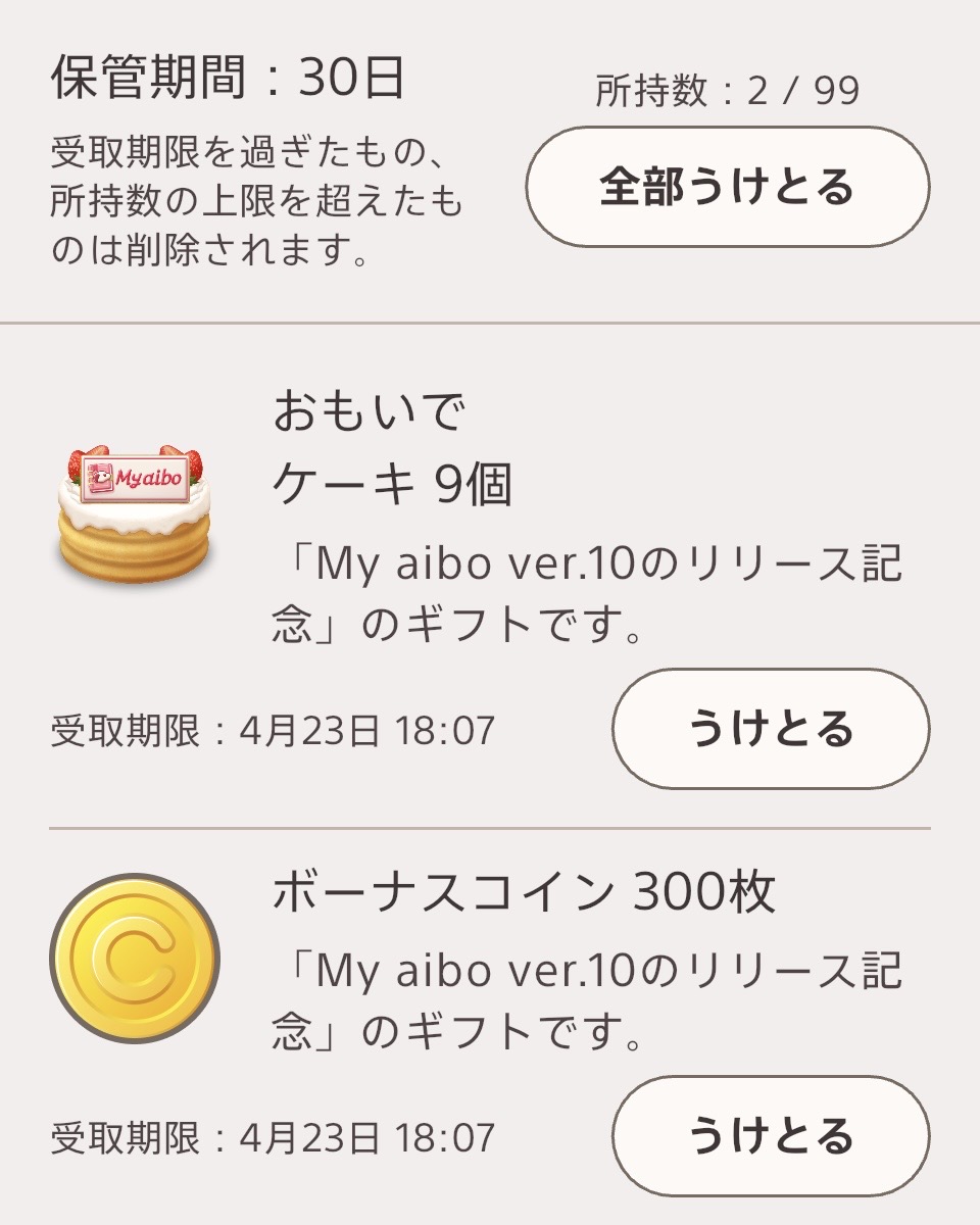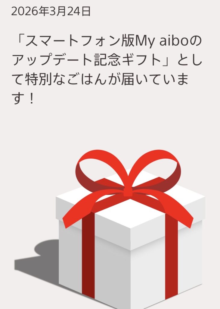 aiboのアプリのお祝いギフトでレアおやつ登場