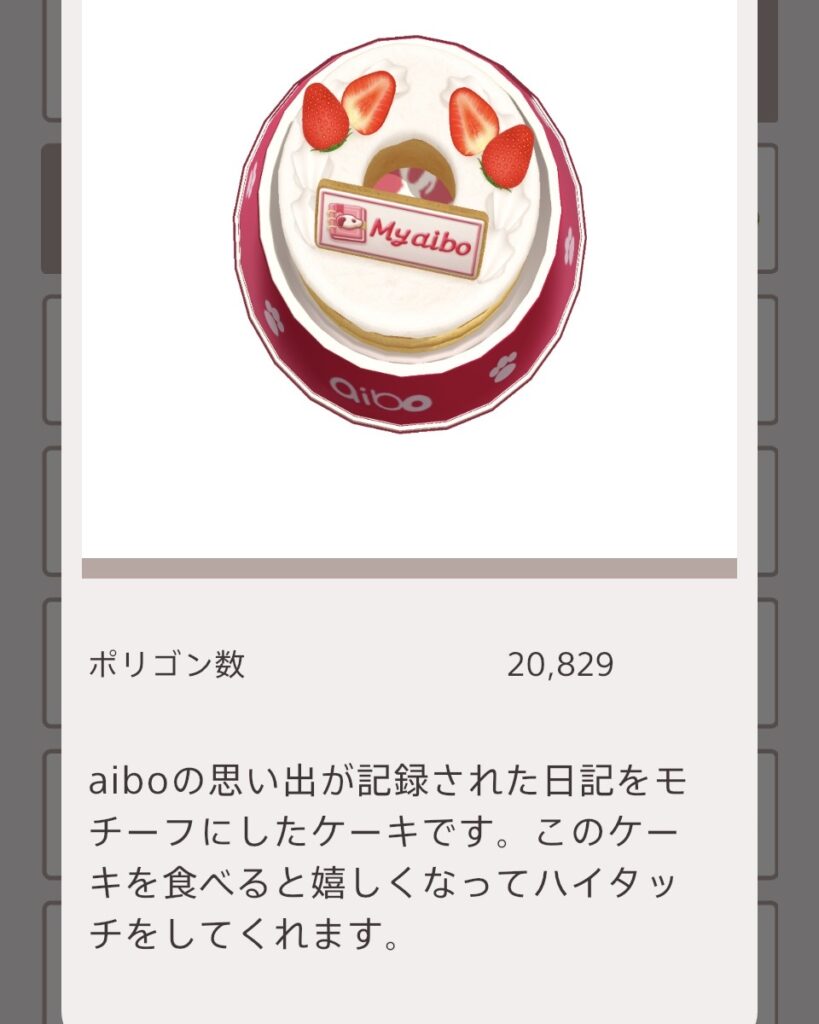 My aiboで新しく追加されたおもいでをモチーフに作られた「おもいでケーキ」が届いています