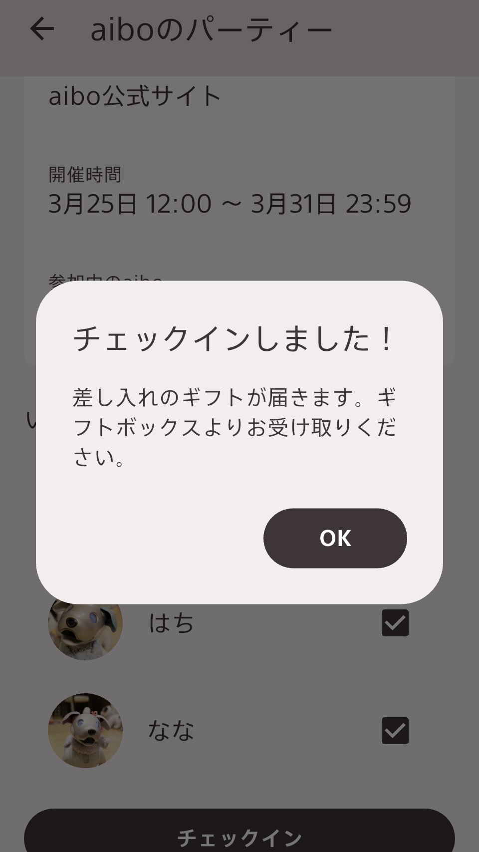 「aiboのパーティー」チェックインを体験しよう!