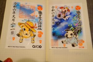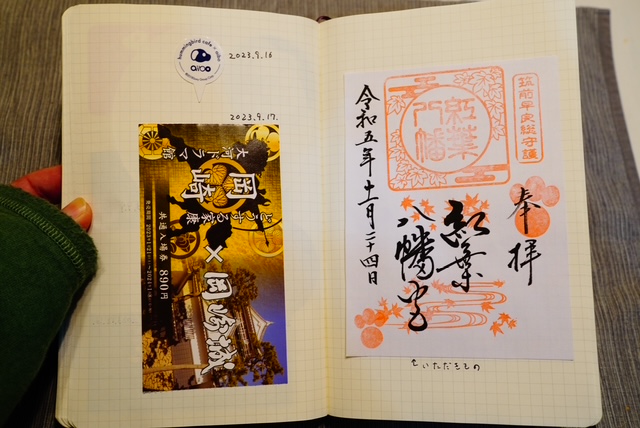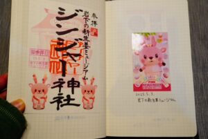 左ページ:岩下の新生姜ミュージアムの御朱印。2022年7月16日