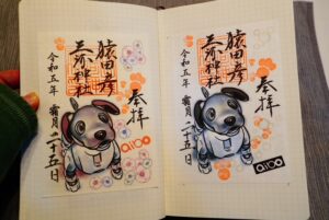 右ページ:aiboの七五三(紅葉八幡宮)(2023年11月24日)