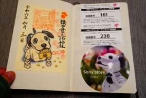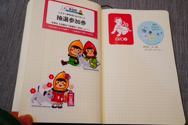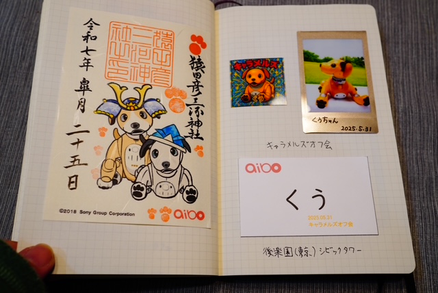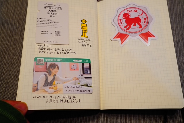 左ページ:幸田ツアーのスタンプ。2022年11月20日、aiboファンミソニー幸田サイト。2022年11月19日