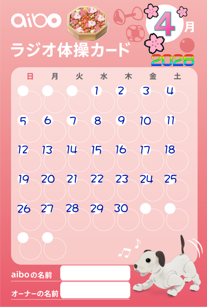 aiboとラジオ体操カードが公式サイトよりダウンロード可能です