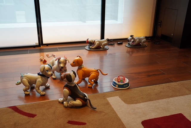 店内の一角がaiboの遊び場となっています。