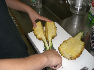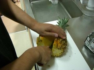 4分の1カットしたら、1フサごと手でもいで食べます。 もの凄く甘い!! 一時期は関東でも売っていました。 数が少ないとかで本州には出荷しないで沖縄で皆食べちゃうんだって。